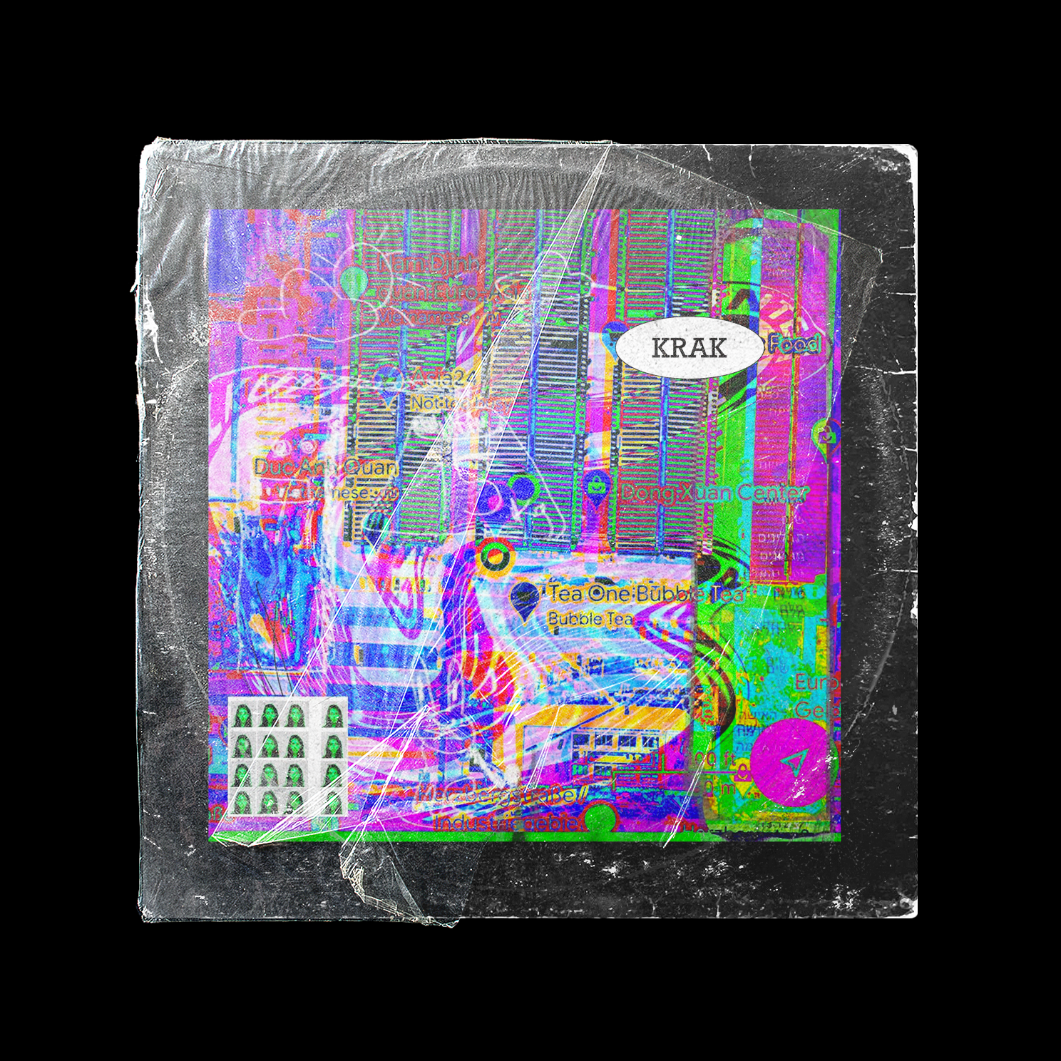Album covers, logo, and a visual interpretation for a post-pop band "KRAK".